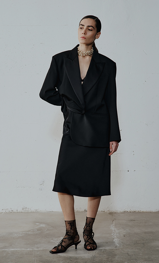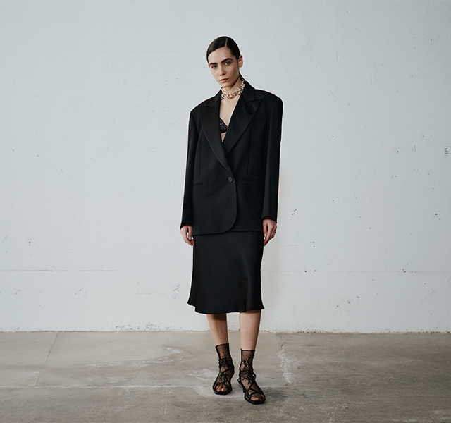 Geometrie grafiche e silhouette fluide.